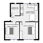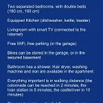 Τα δωμάτια του διαμερίσματος είναι εξοπλισμένα με τηλεόραση, καναπέ και γραφείο. Το διαμέρισμα αποτελείται από 2 υπνοδωμάτια και κουζίνα φούρνο μικροκυμάτων, ηλεκτρικό βραστήρα και πλυντήριο ρούχων. Σας παρέχονται 1 μπάνια για περισσότερη άνεση.